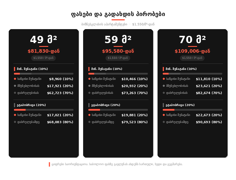 ,,ქრონომეტრის’’ ახალი ბინები თბილისში - ფასებისა და გადახდის პირობების კონკრეტული მაგალითები